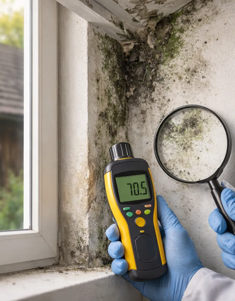 Wykorzystujemy m.in. pomiary punktowe, analizę mikroklimatu oraz diagnostykę przyczyn zawilgocenia.